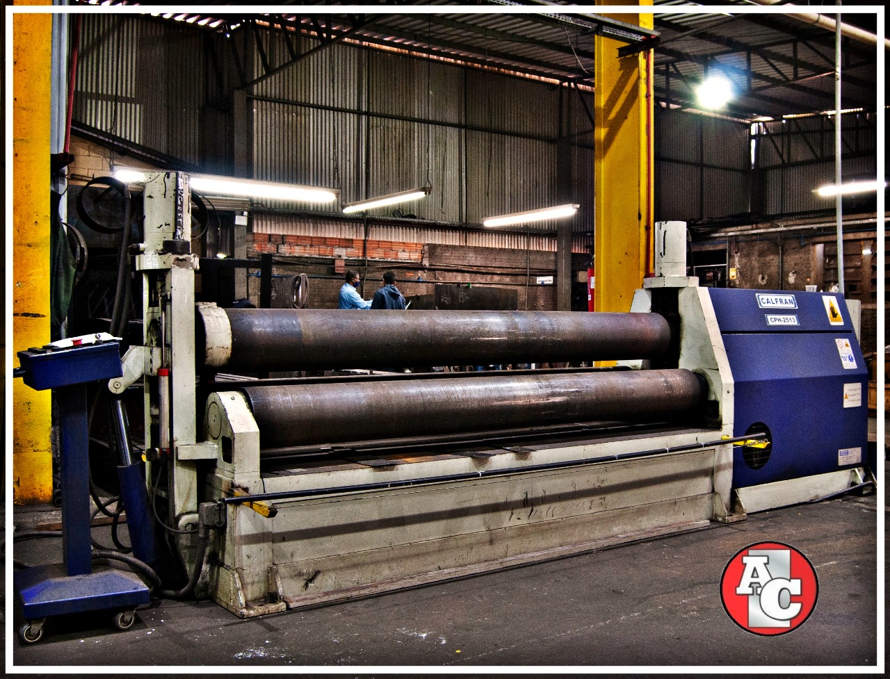 A calandragem é um processo industrial que atribui o formato final às peças laminadas de metal, principalmente às chapas de aço. Ela é realizada em uma máquina conhecida como calandra. Capacidade para chapas de 2500mm de comprimento até 12mm de espessura.